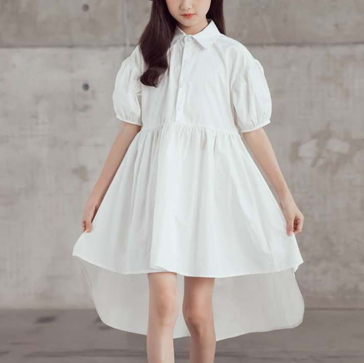 襟付きのゆったりとしたシルエットが魅力的なパフスリーブシャツワンピース。