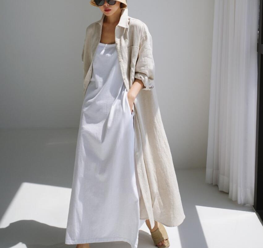 夏にぴったりな麻綿混紡素材を使用したシャツワンピース。