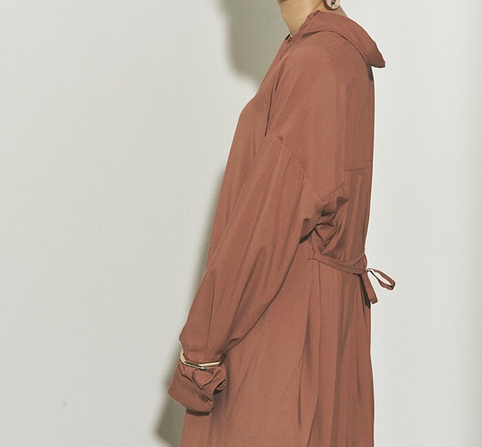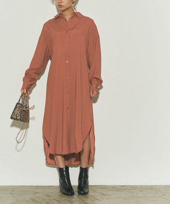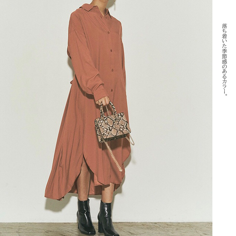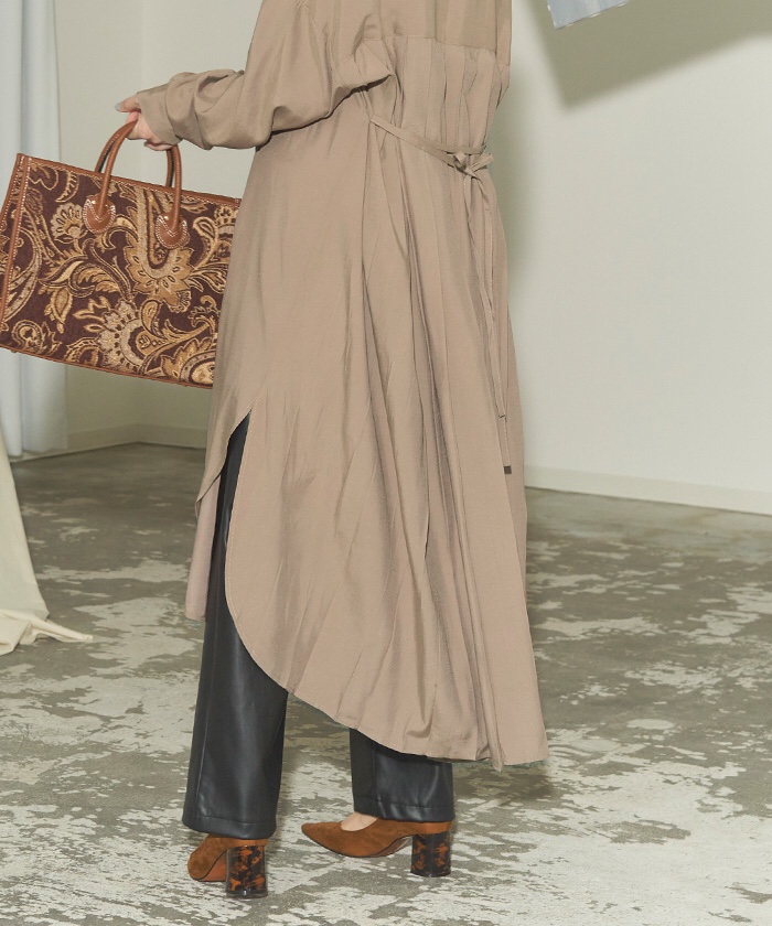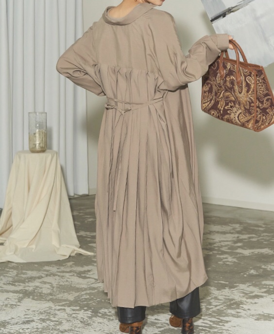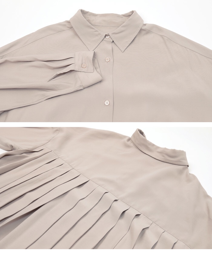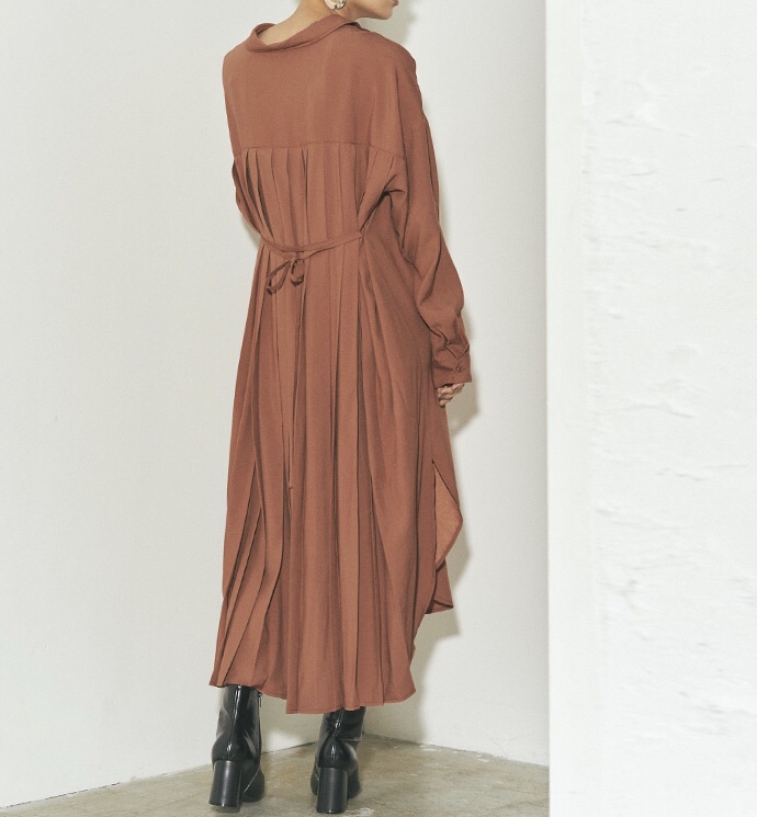 エレガントな背中プリーツが美しいシャツワンピースです。